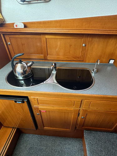 A new rear cockpit cover & canopy fitted housing the large cockpit area with dinette rear seating, RHUM as 4 berths, with a double berth in main cabin, with 2 single V-berths in the forward cabin, cassette toilet situated in a separate bathroom cabin.
