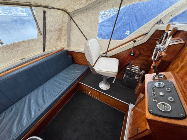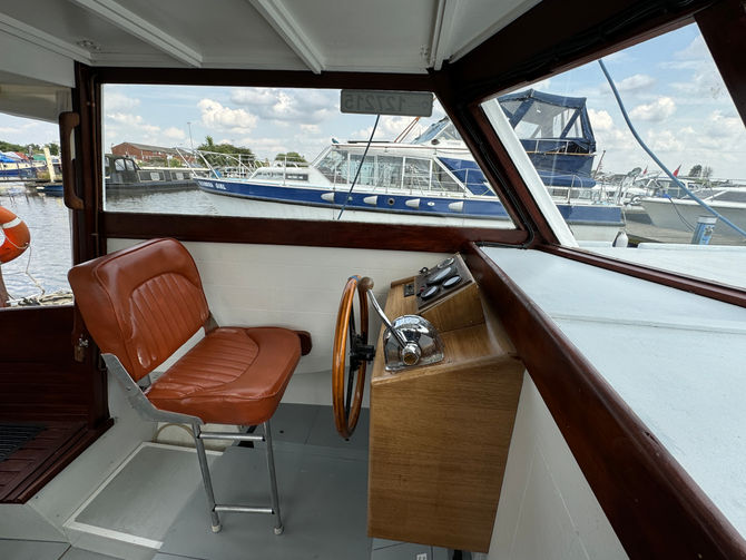 The current owner purchased in 2019, and has fitted out the interior, the internal space composers of a wheelhouse as you walk in from the stern, solid oak doors to starboard & port, with solid oak framed windows to the exterior, internally the wheelhouse in fitted out in solid oak, need a little work to complete.