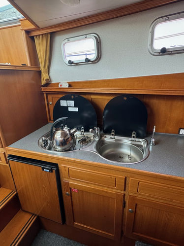 Offering 4 berths within 2 cabins. Light, comfortable saloon with galley complete with hob, sink, and fridge.